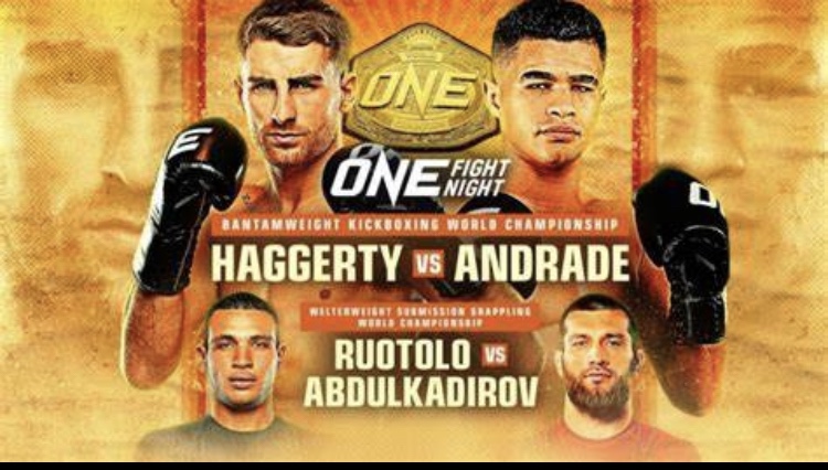Haggerty with front kicks and jabs early. Straight right down the middle, land for Haggerty. Haggerty was landing a lot of combinations in this first round. Andrade was just eating the punches and being patient. Good first round by both guys. They both did what they wanted to do. Andrade was a bit more aggressive coming out in this second round. Haggerty hurt Andrade with a head kick!!! Andrade is down, and IT’S OVER!!!