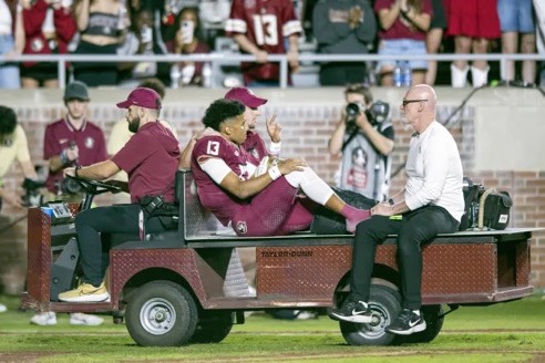 Florida State football quarterback Jordan Travis appeared to sustain a significant injury to his lower left leg during the first quarter against North Alabama at Doak Campbell Stadium on Saturday.
