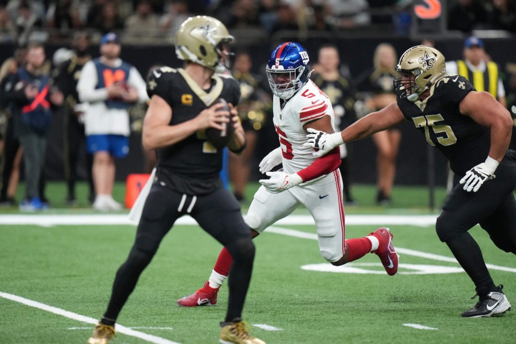 New Orleans—On Sunday, Derek Carr threw for 218 yards and three touchdowns, while the New Orleans defense sacked Tommy DeVito seven times, leading the Saints to a 24-6 victory over the New York Giants(5-9).