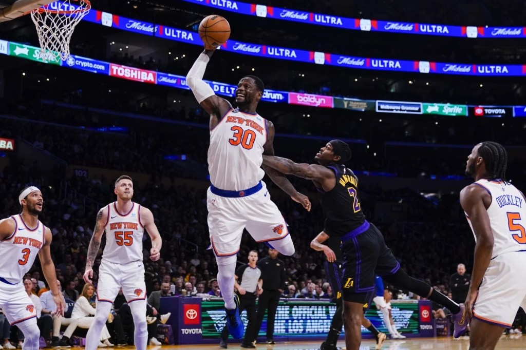 Julius Randle continued to play well, scoring 27 points, and grabbing 14 rebounds. Immanuel Quickley added 20 points to help the Knicks fend off a late rally from the Lakers, led by James.