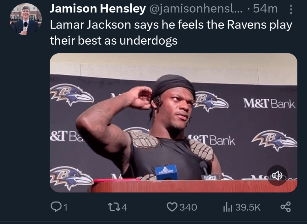 This is the poise that Ravens brass have prayed for in Lamar. A progression from a running Quarterback to a Quarterback who runs to pass. Lamar is finding another gear where he uses his legs, or the threat of his legs like a pump fake. He is finding balance between his legs and arm similar to Michael Jordan who began using his air time, not to dunk, but hover as he used his jumper.