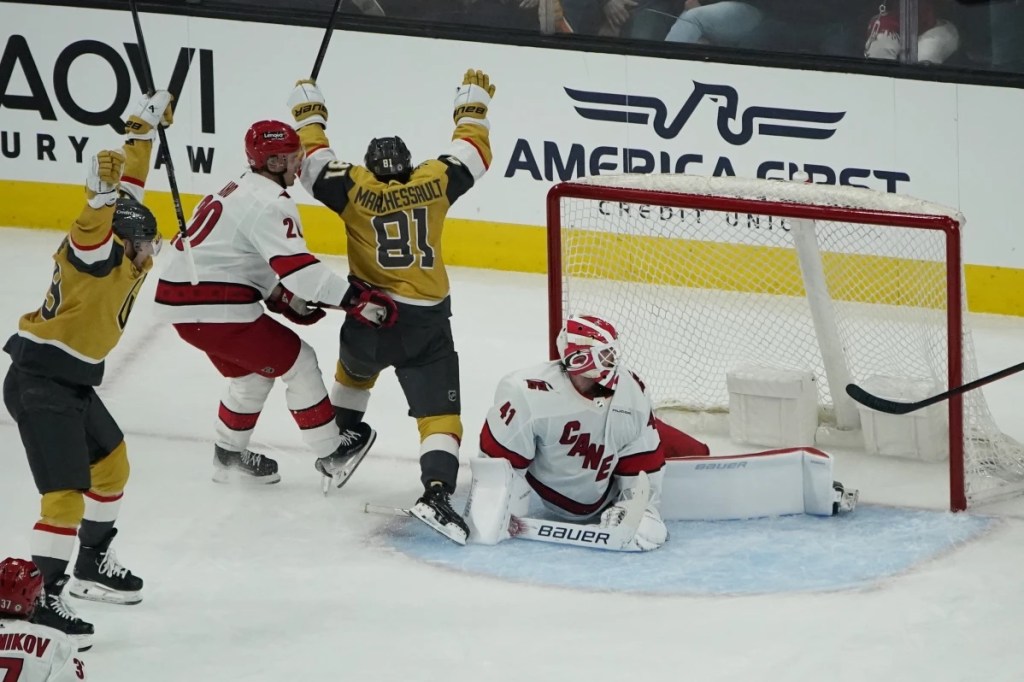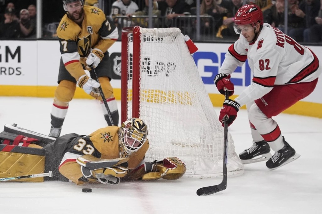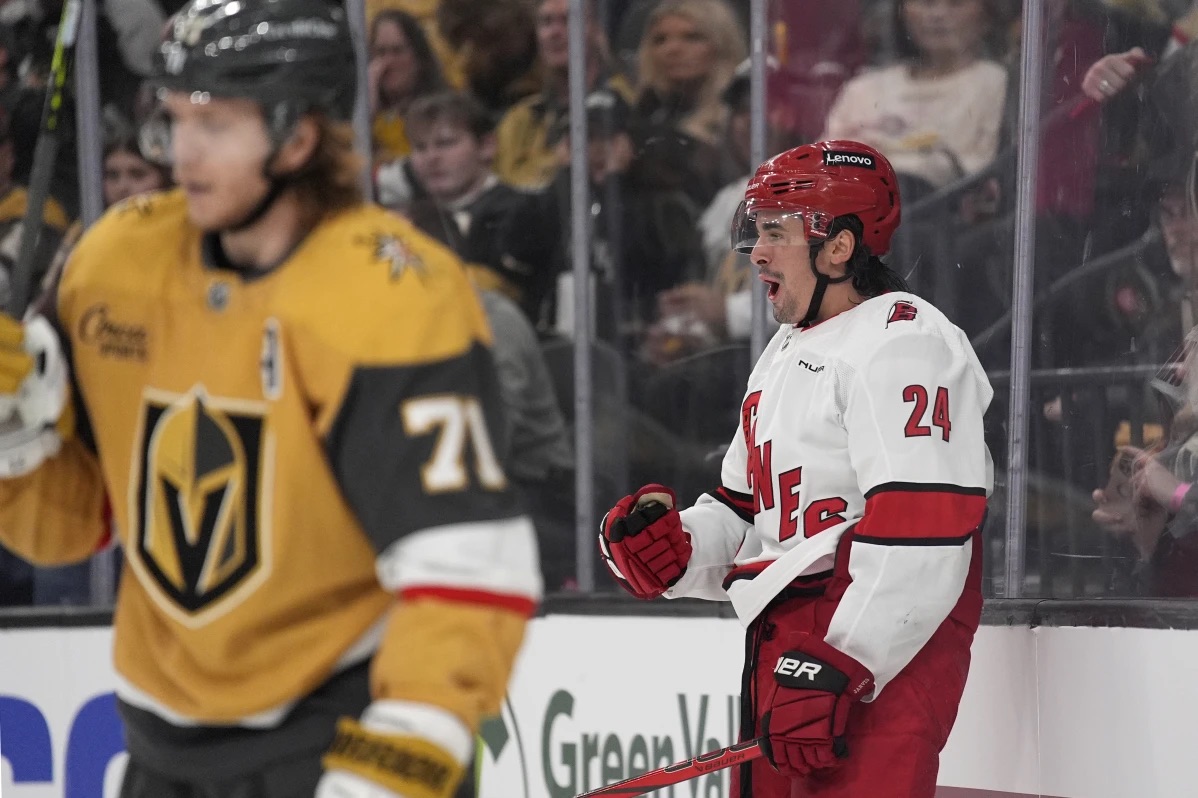 Carolina(32-17-5) completed a sweep in the two-game season series and advanced to a 4-2 record at T-Mobile Arena.