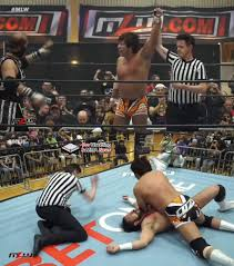 Tito finally obtained a winning record, allowing him to challenge for the championship. Him and Kojima start with having a big boy off, with strikes and shoulder tackles. Lots of back and forth with Tito showing surprising agility and Kojima showing a resiliency belying his age. The final sequence sees Kojima hit a DDT and cutter, followed by Tito planting Kojima with the F-5, before Kojima finished with the patented Western Lariat to put the challenger away.