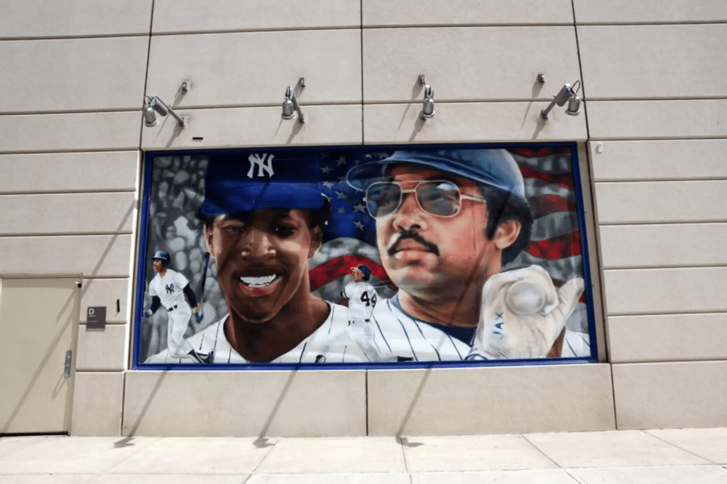 The first mural is of Hall of Famer Reggie Jackson and teammate second baseman Willie Randolph. Jackson and Randolph were teammates from 1977-1981. During this 5 year span the two would go on to win back to back World Series Championships.