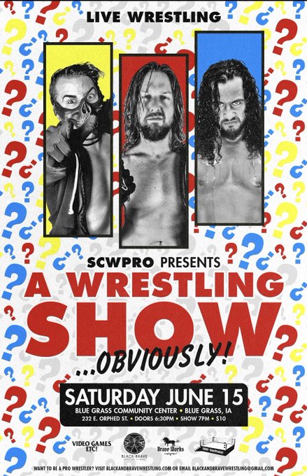 SCW Pro’s next event is at the Iowa City Block party on June 22nd. SCW Pro’s next event at the Blue Grass Community Center will be Red, White, and Bruised on July 13th. You can keep up to date on SCW Pro as well at @scwpro.
