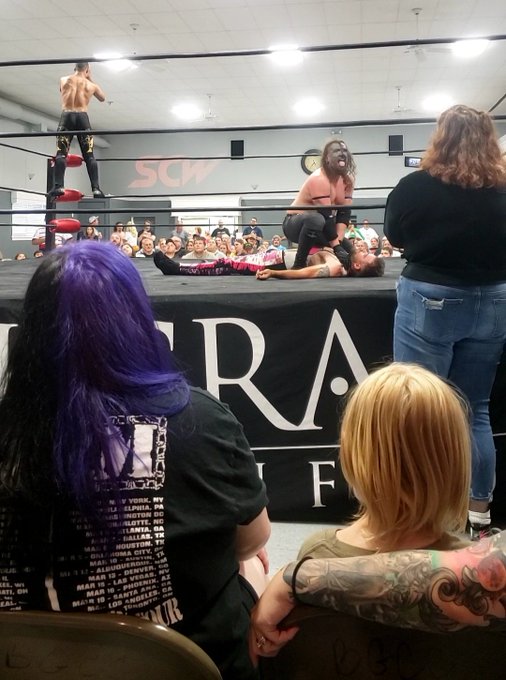 Bonhart spent most of the match in control of his allegedly much larger opponent. If Bonhart’s skill did not keep the advantage, Storm would be more than willing to interfere. Unfortunately, despite the interference, Studwell countered the electric chair into a victory roll and pulled off the upset.