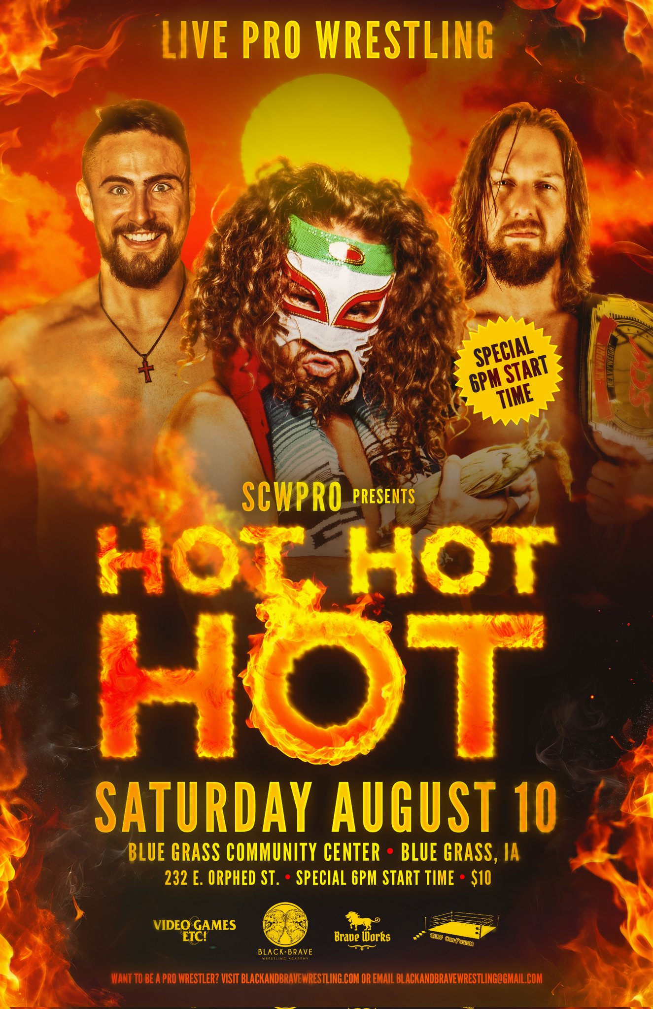 On August 10th, SCW Pro returned to the Blue Grass Community Center in Blue Grass, Iowa and we are on the road to Anniversary. An earlier start time did not affect the crowd, as the Community Center was nearly full.