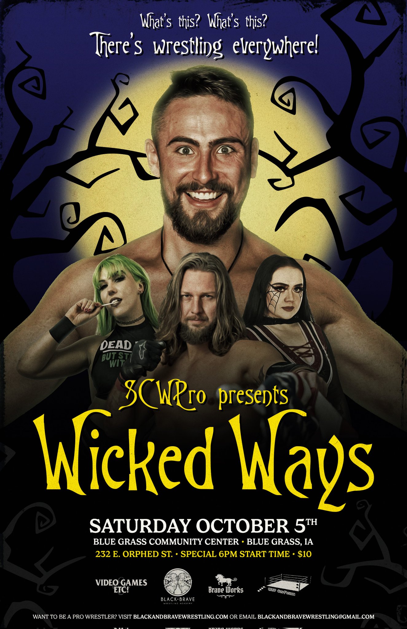 On October 5th, SCW Pro returned to the Blue Grass Community Center to teach us their Wicked Ways. Alex McCarthy (who claims to not be a member of the Chosen) is our announcer for the evening, & Timothy Regal & Knight Wagner are on commentary duty.