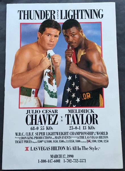 The fight was billed as “Thunder Meets Lighting” as 3-Division world champion and legend Julio Cesar Chavez (66-0) from Mexico met the young upstart and 1984 Olympic Gold Medalist Meldrick Taylor (24-0-1) from Philadelphia, Pennsylvania in a matchup of undefeated 140-lb. champions at the peaks of their respective careers. It was also billed as “the biggest little fight money can buy”, because it was the one the world was looking forward to. The winner was going to ascend to the distinction of the best fighter in the world and become the marquee fighter below the heavyweight division in boxing (at least).