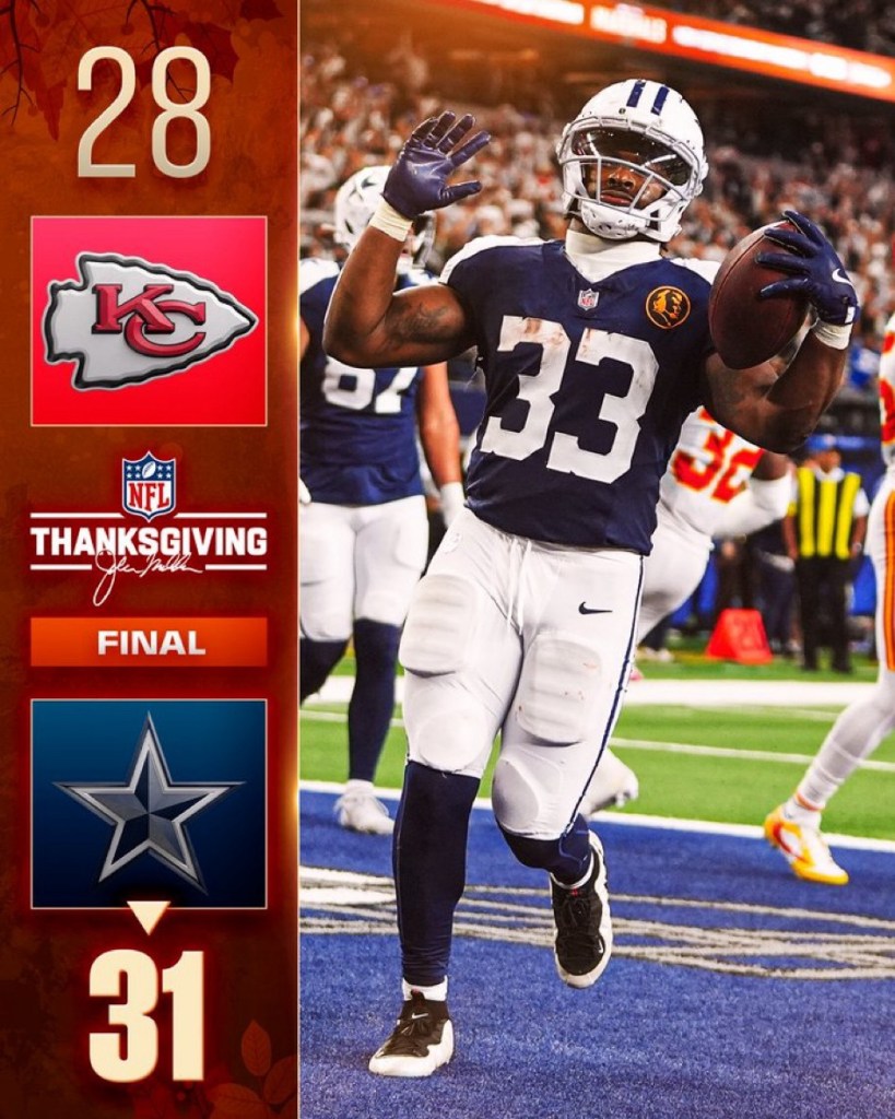 Arlington, TX – In a “playoff atmosphere” Thanksgiving Day clash that lived up to the hype, the Dallas Cowboys outlasted the Kansas City Chiefs 31-28 at AT&T Stadium, securing their third consecutive win and boosting their playoff hopes. The game was a homecoming for Texas-native Patrick Mahomes and his first Thanksgiving appearance, but it was Dak Prescott and the Cowboys’ performance that stole the spotlight.